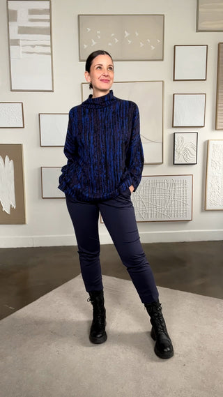 Poncho à col montant en tricot vert de gris à jacquard noir (TU)