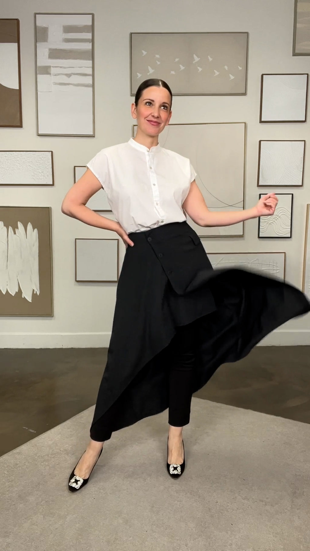 Surjupe portefeuille en gabardine anthracite lavable (XS à M)