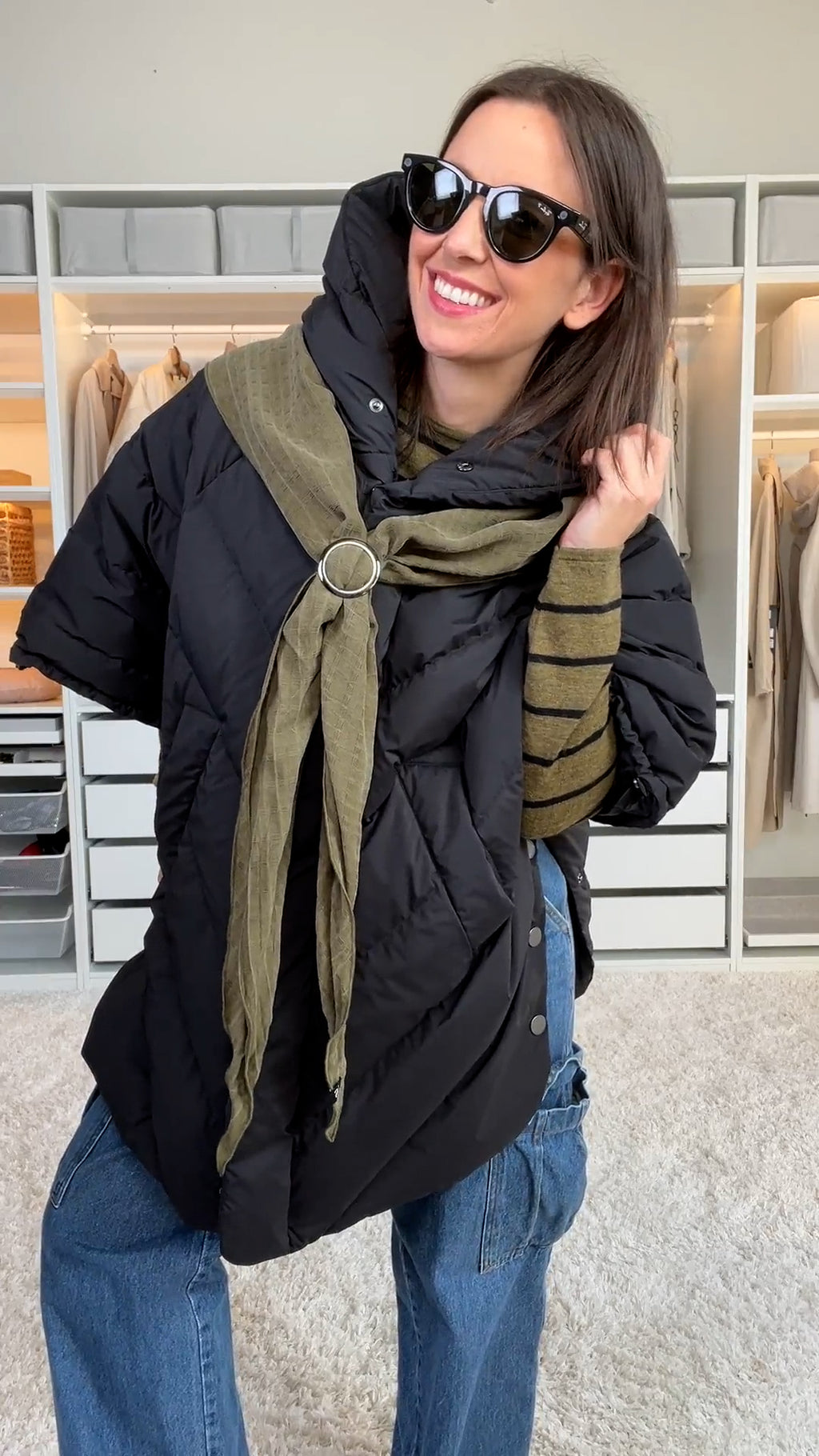 Manteau kimono matelassé à manches écourtées, une pièce forte et actuelle qui allie confort et allure contemporaine. Son design structuré et facile à porter apporte une touche mode à la garde-robe de transition.