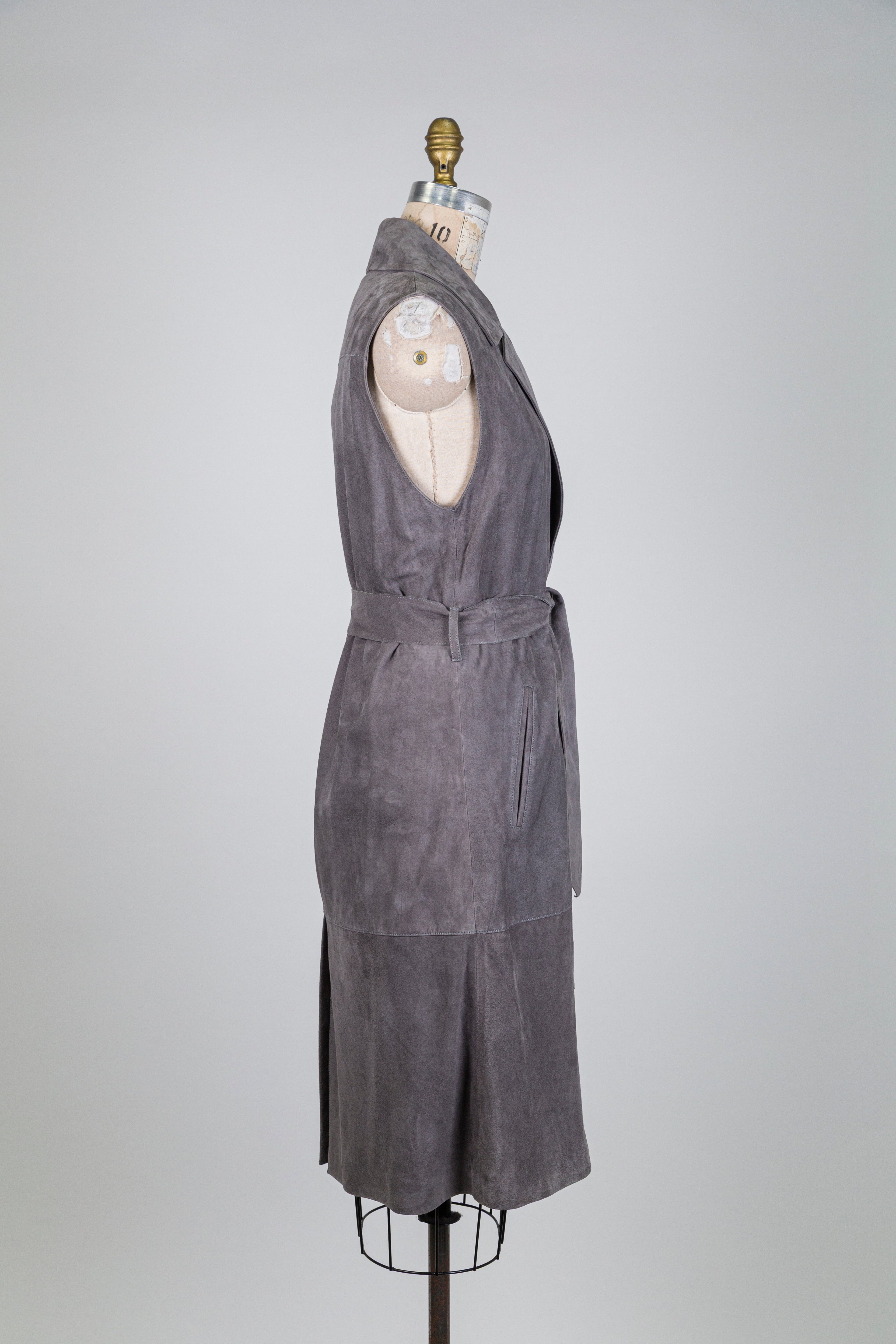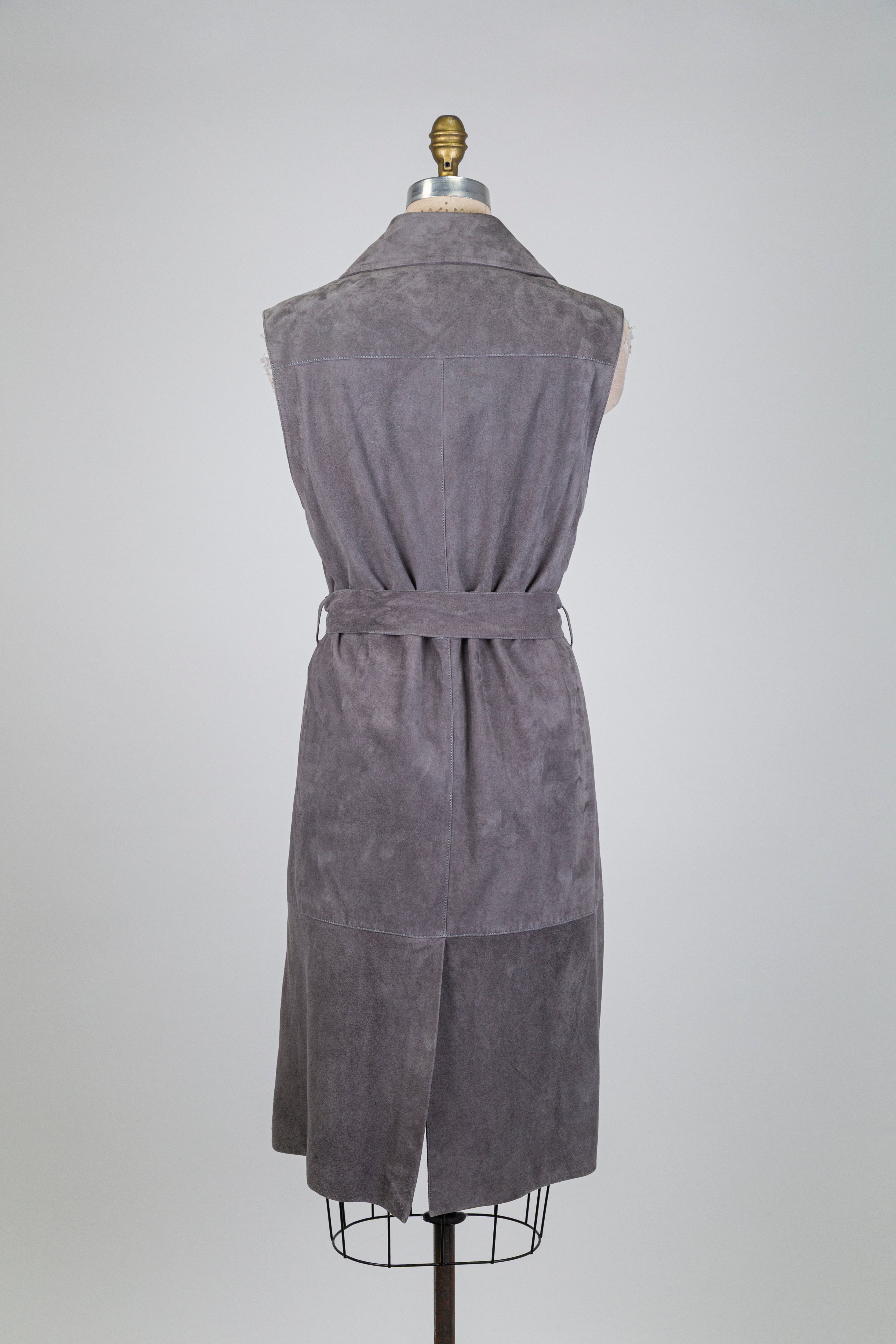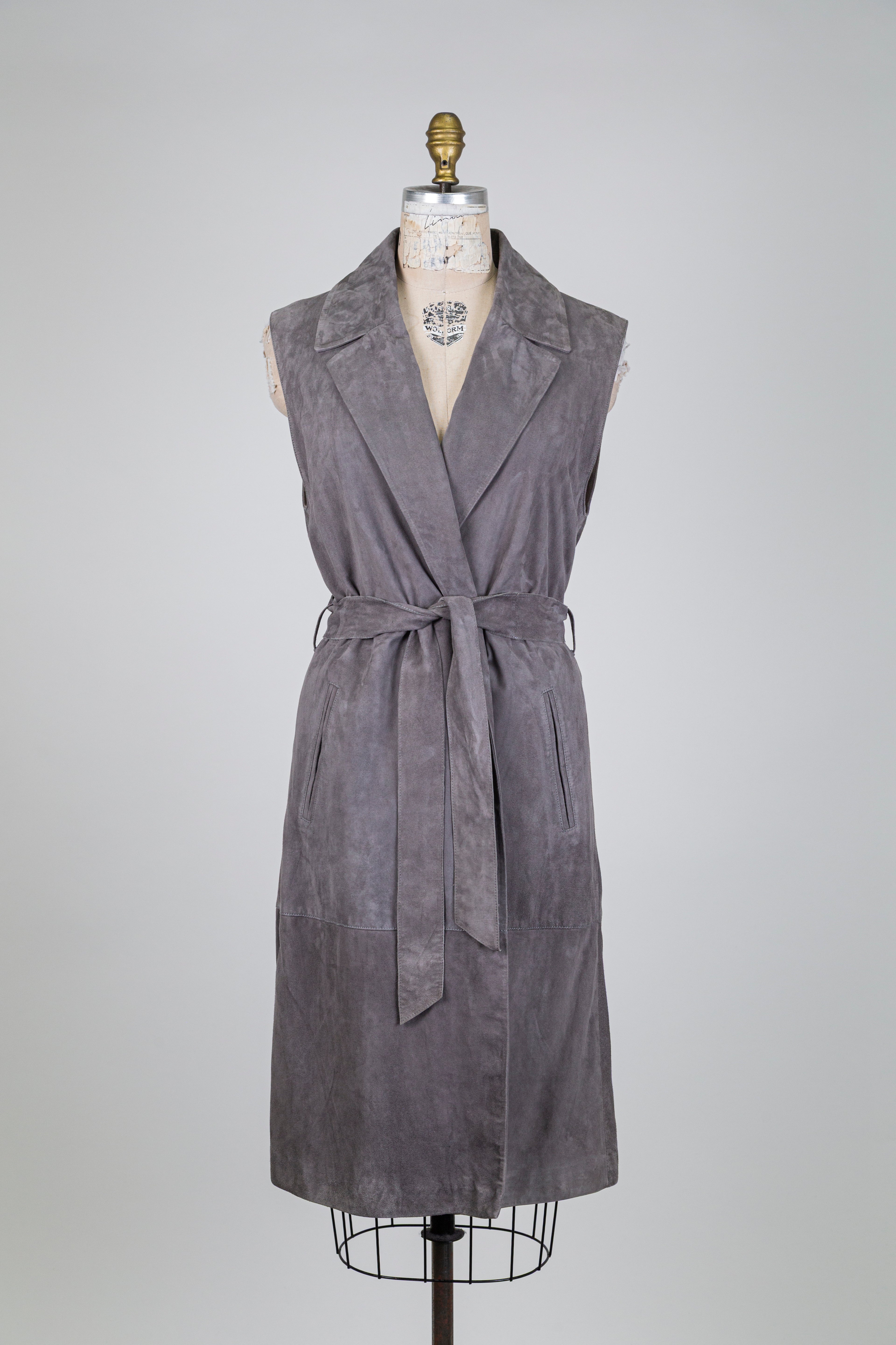 Blazer sans manches en suède gris, une pièce chic et moderne qui apporte structure et élégance à vos tenues. Facile à agencer, il complète parfaitement une garde-robe du quotidien.