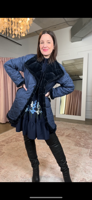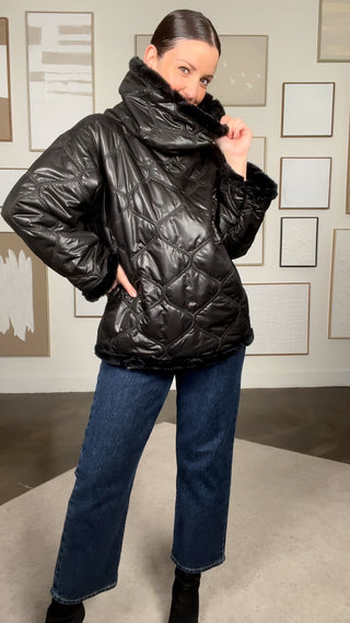 Manteau sable rosé enfilable matelassé fausse fourrure (S-M)