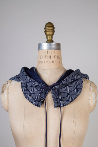 Le capulard, croisement entre le foulard décoratif et le capuchon pratique, est confectionné ici-même, à notre atelier de Montréal.