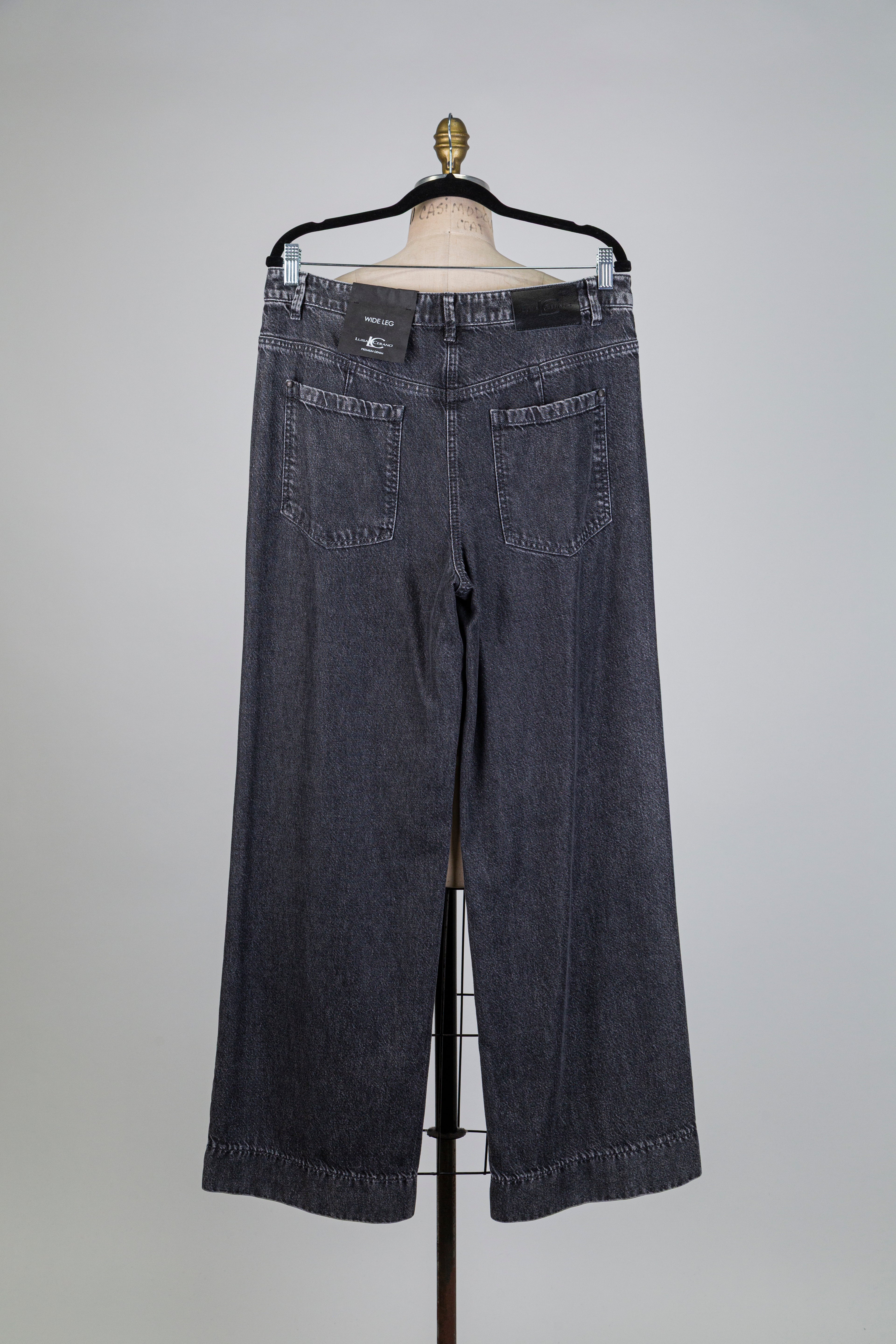 Pantalon denim noir délavé à jambe large (12)