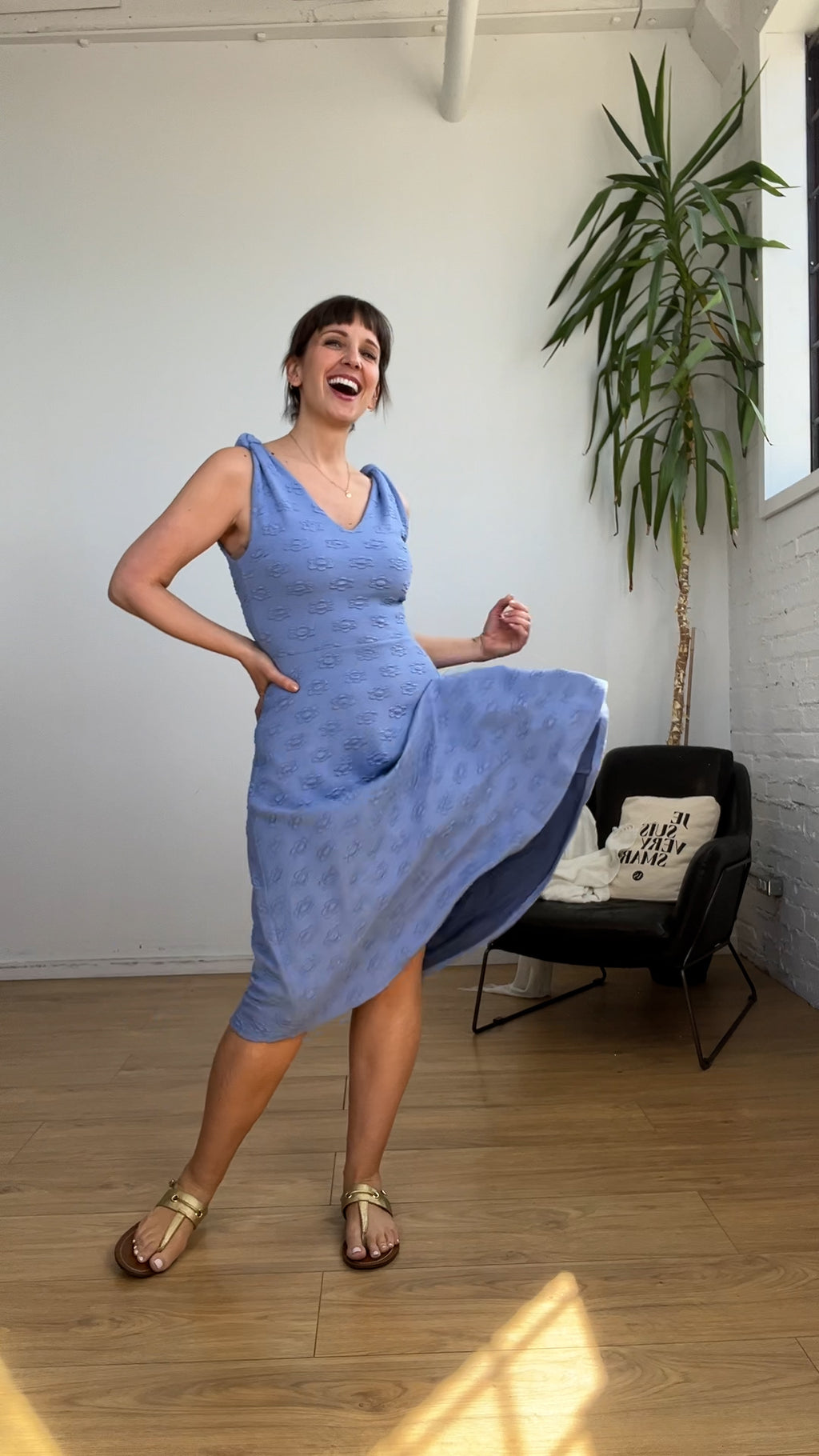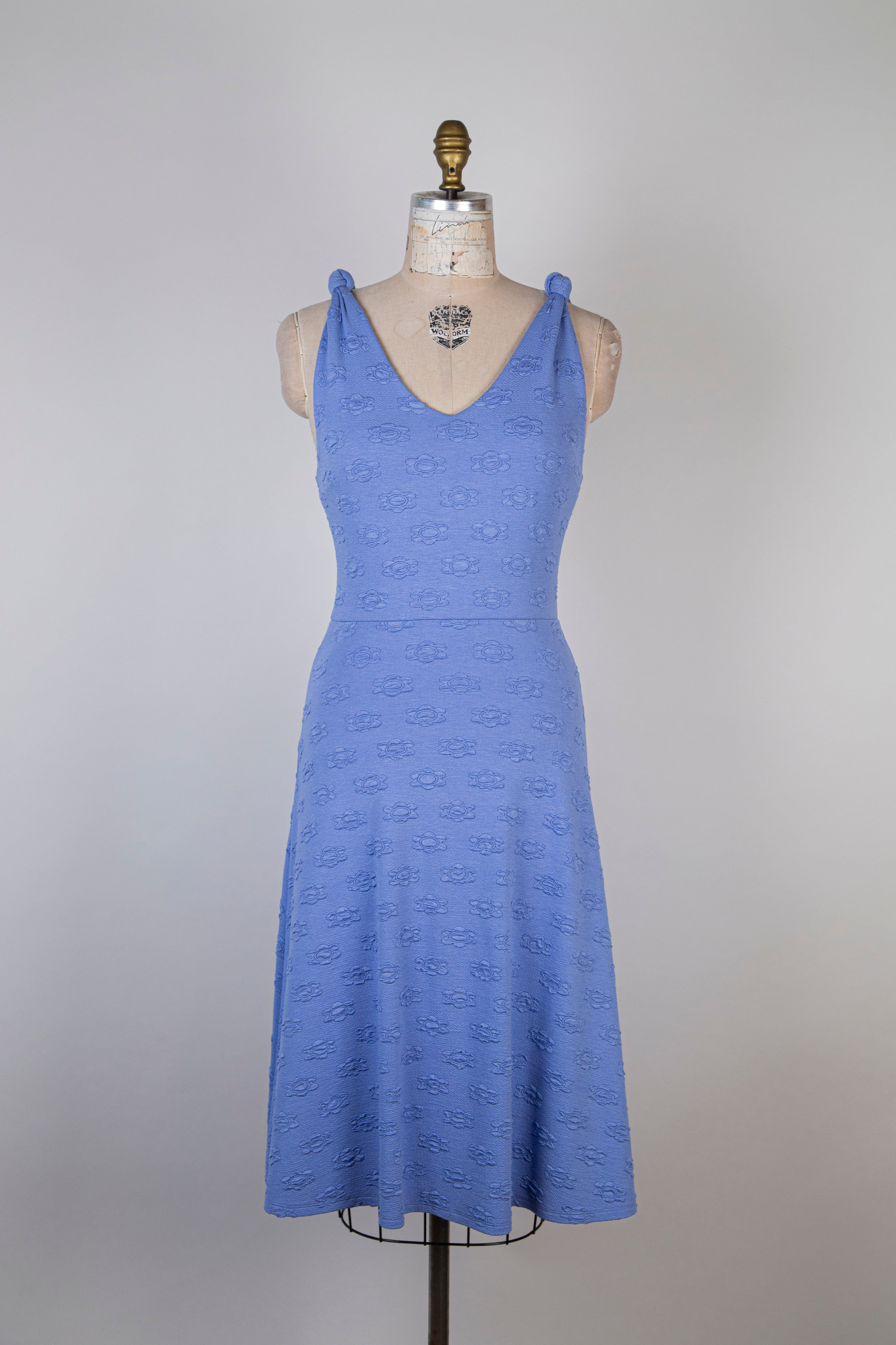 Robe évasée à jacquard floral bleu lavande (XS à L)