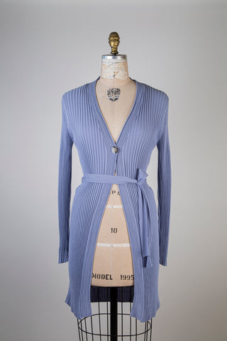 Veste en tricot de coton bleu lavande (4-6-10)