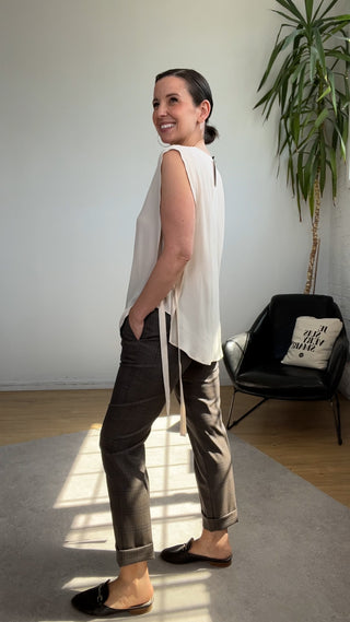 Pantalon taille haute à pince mastic lavable (8+10)