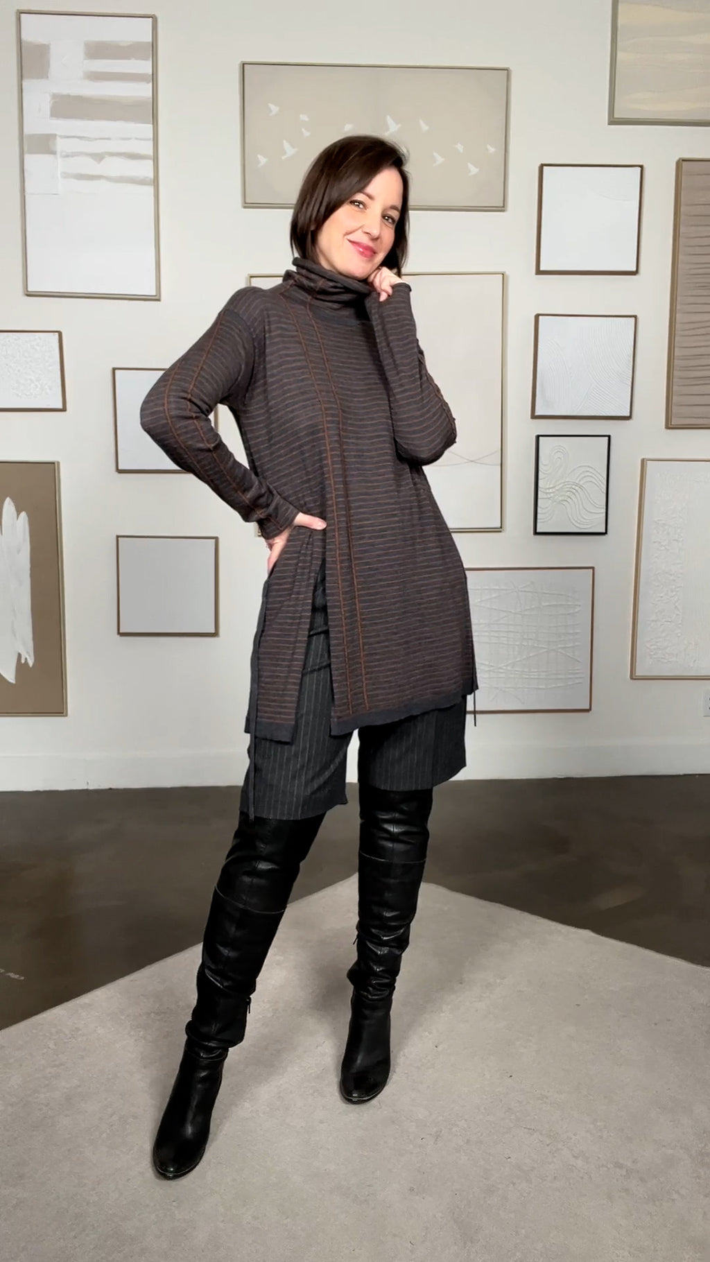 Tunique mérinos à rayures gris et brun (6)