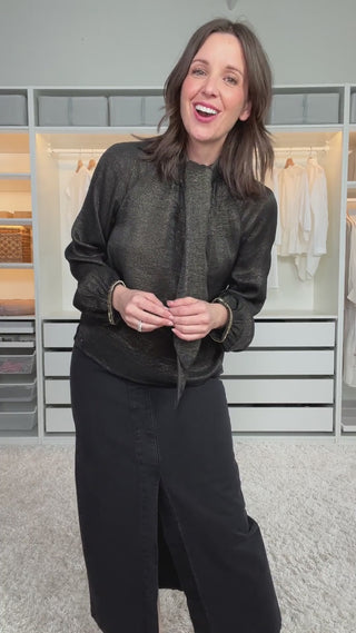 Blouse noir doré à col lavallière (S)