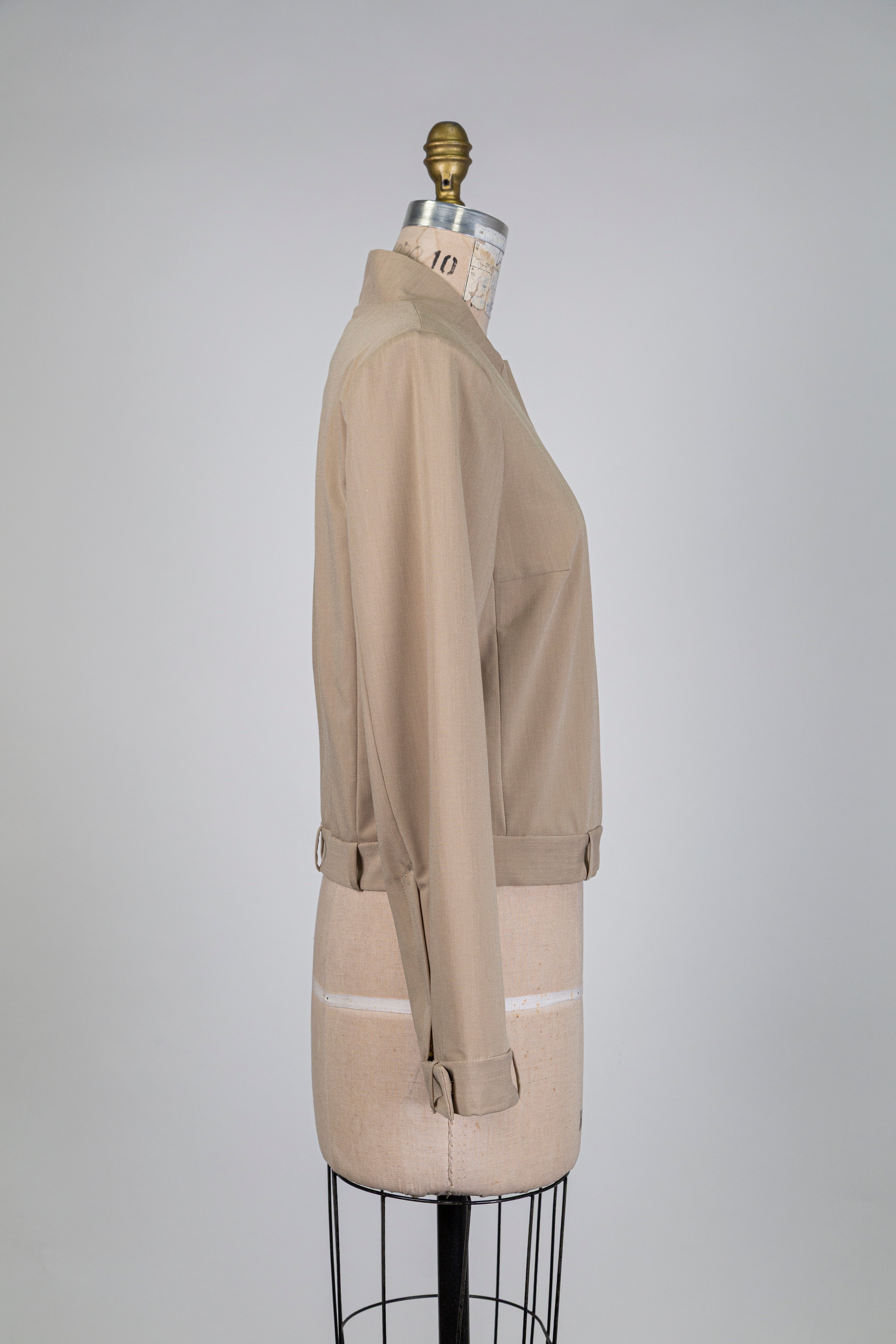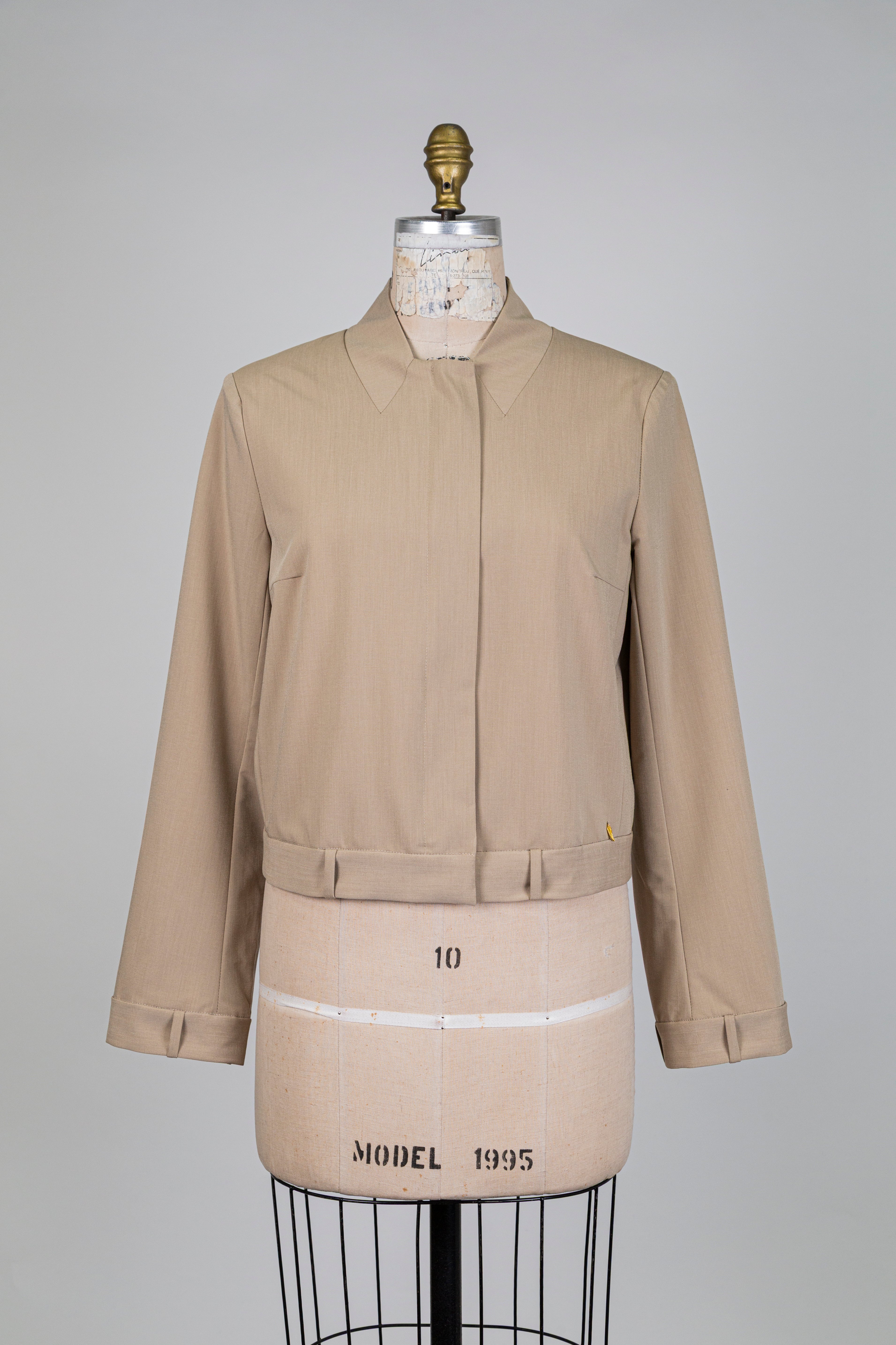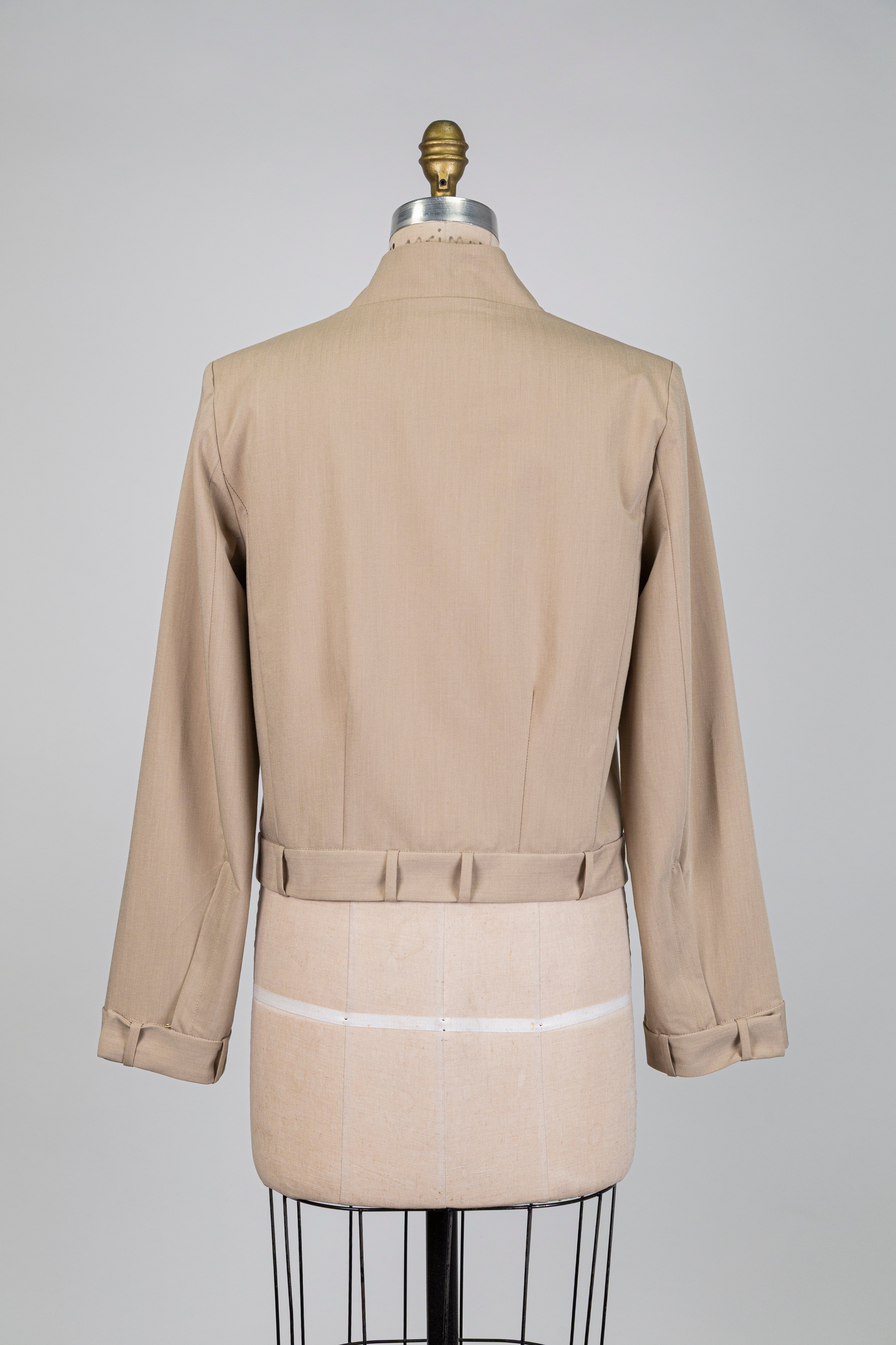 Veste beige à passants aux ourlets, pièce élégante à la teinte douce où les passants aux ourlets apportent une touche distinctive et pleine de caractère.
