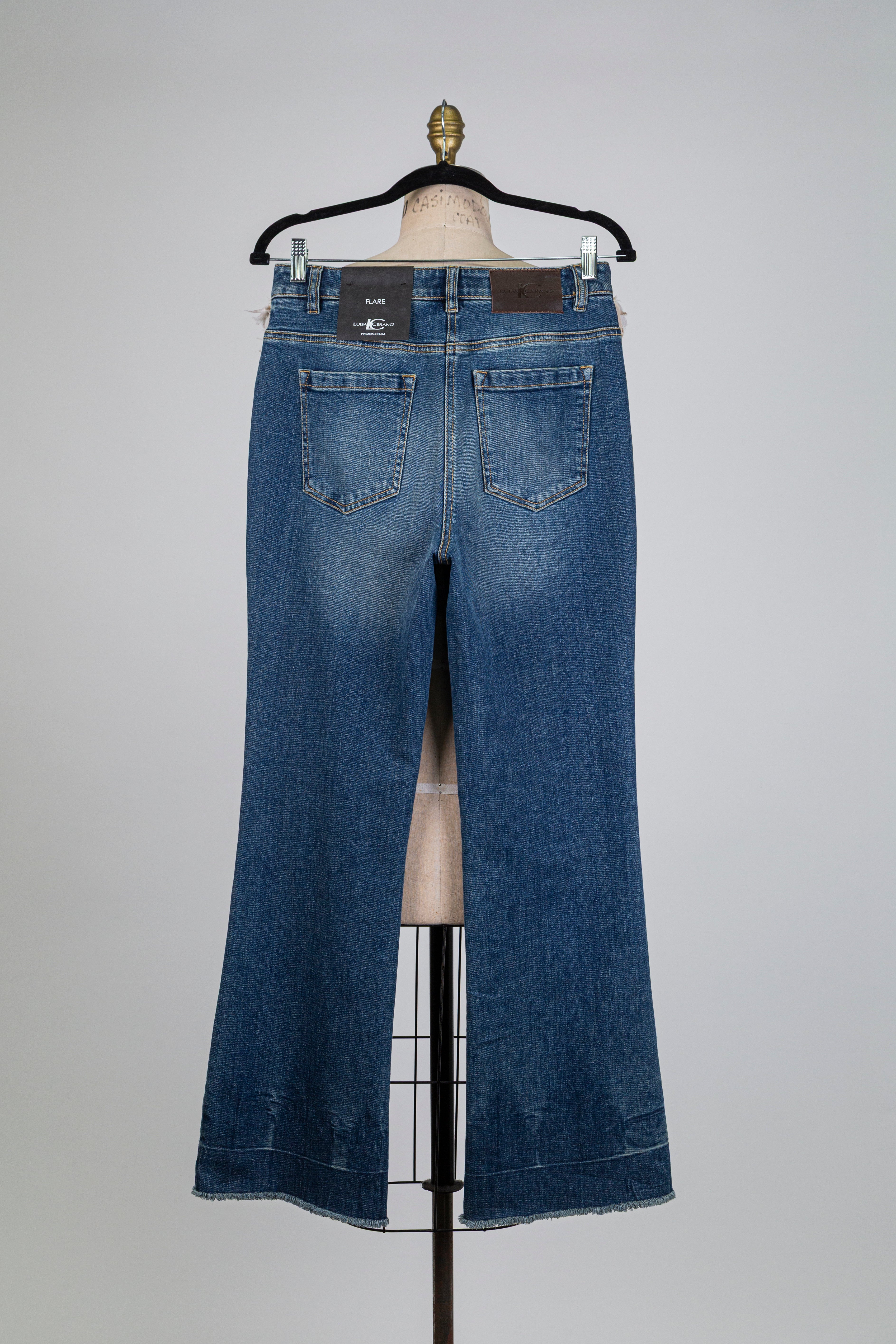 Bootcut denim trousers with frayed hem (4)