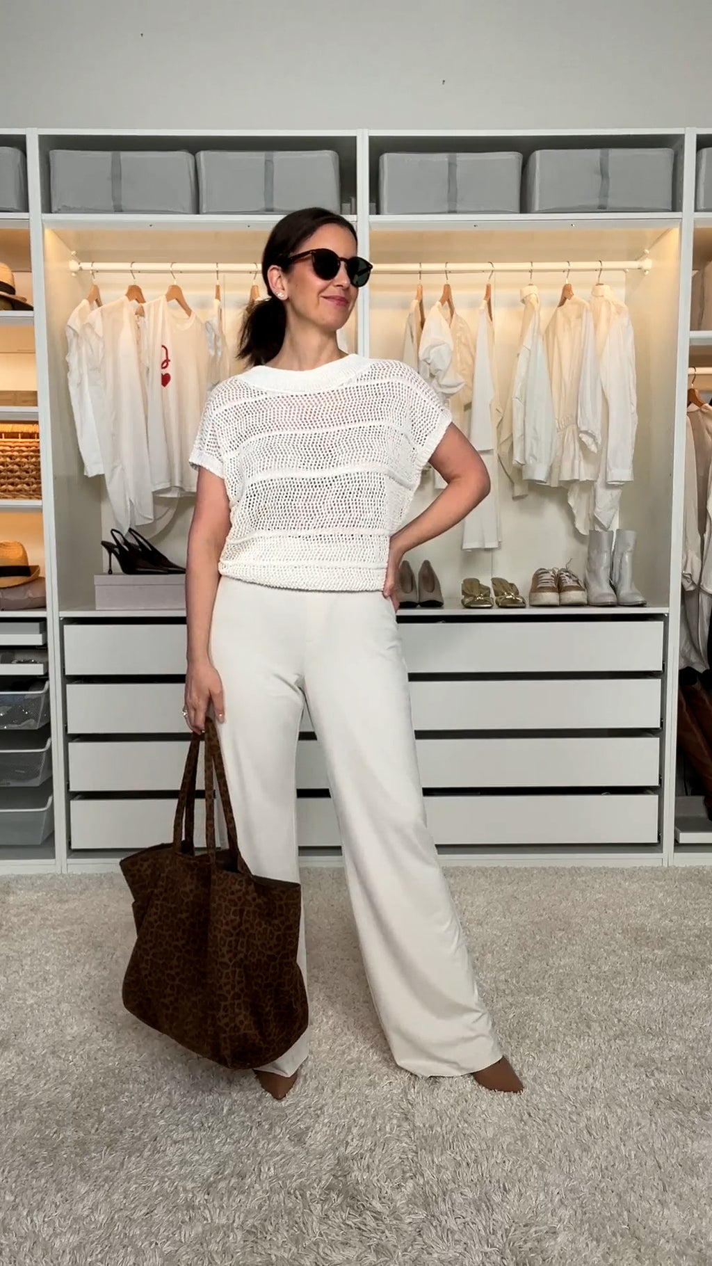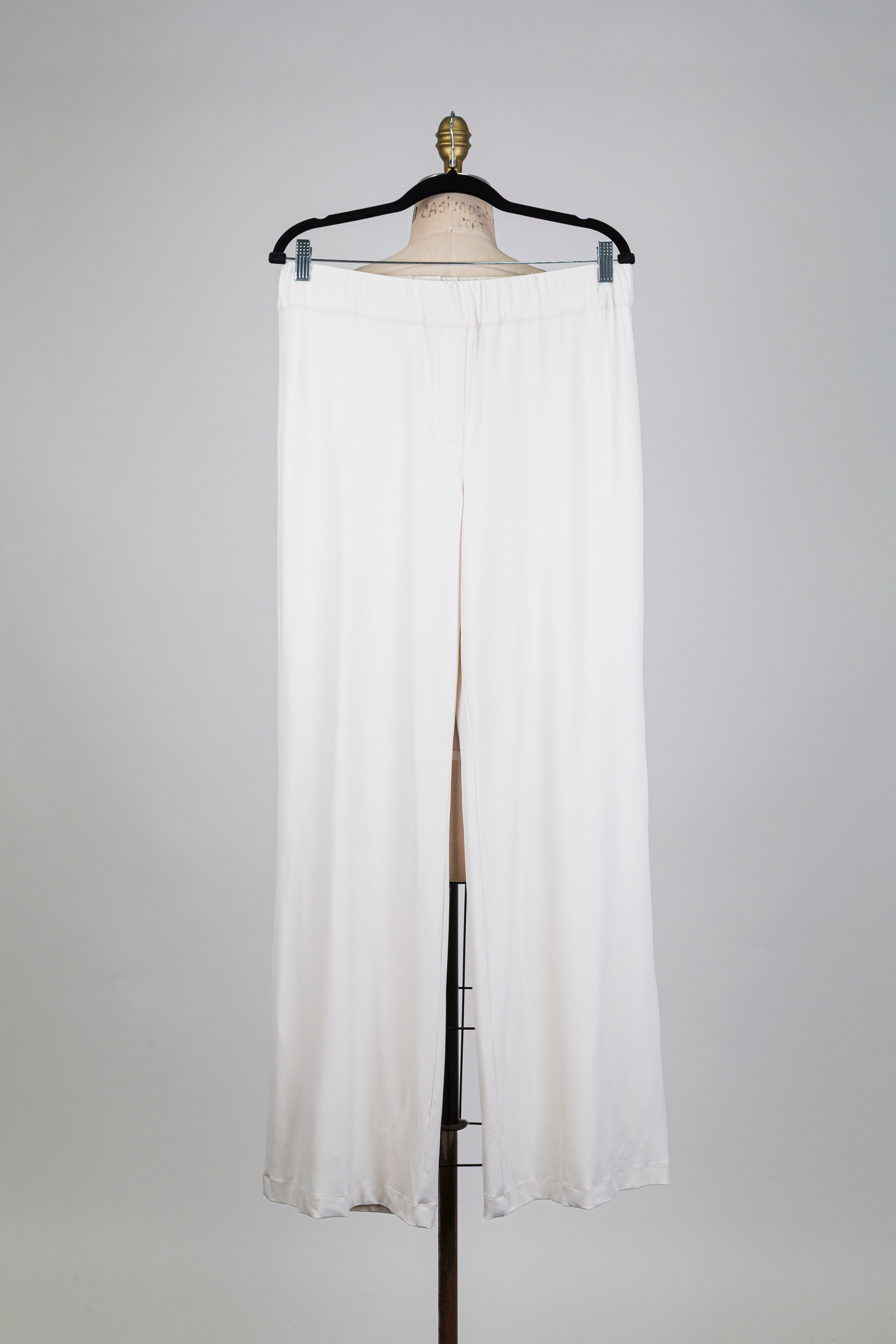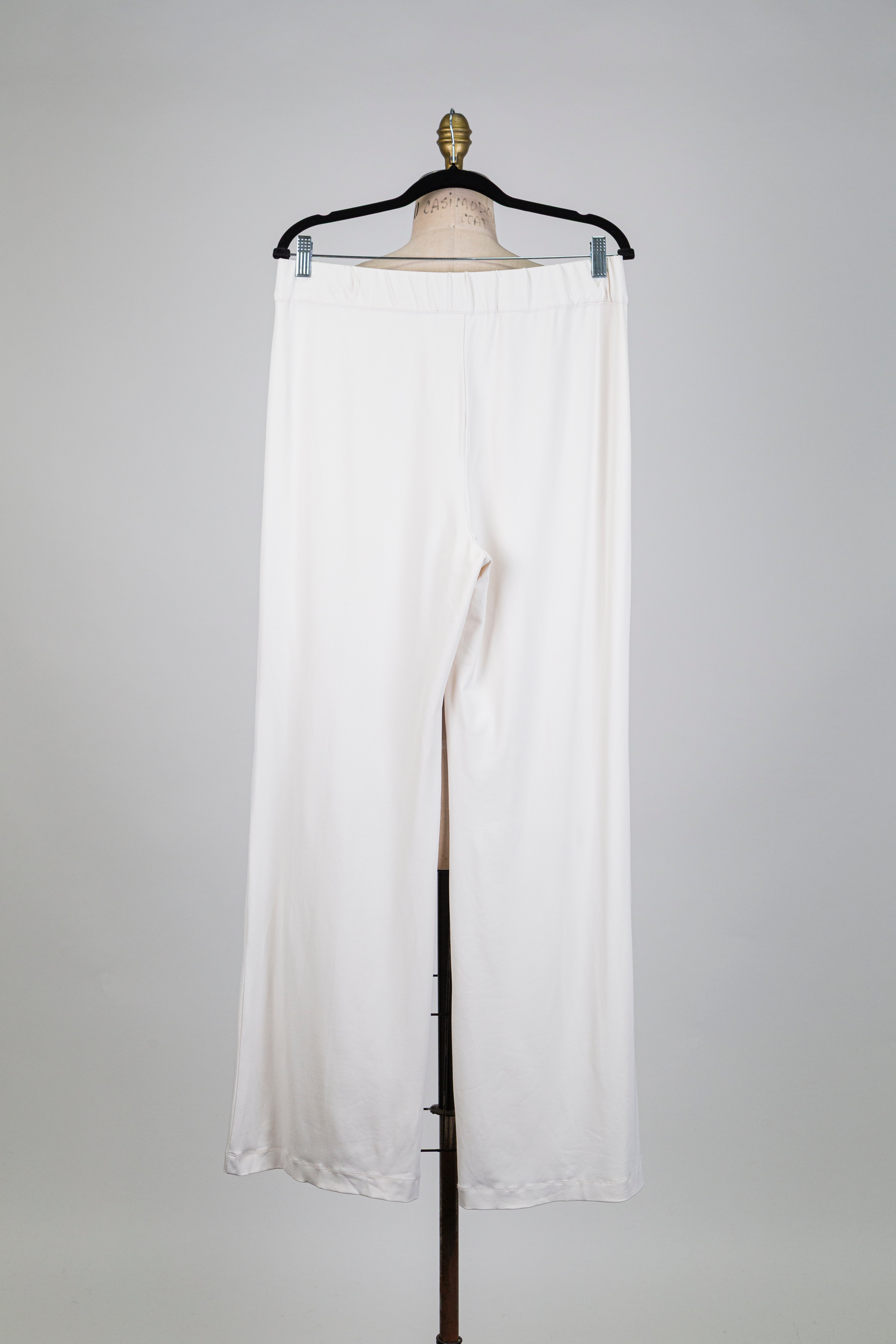 Ivory white straight-leg trousers, a bright piece where the straight line reveals a neat and elegant look.