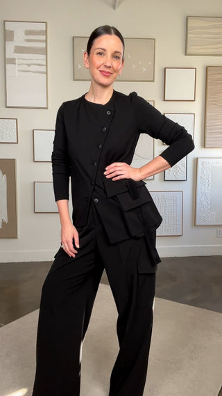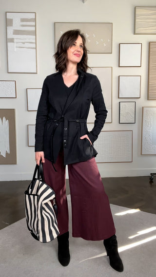 Black techno linen blazer with decorative eyelets (XS-SML)