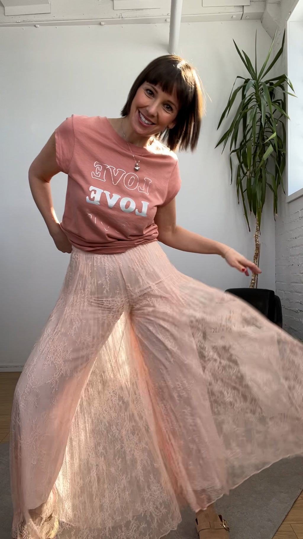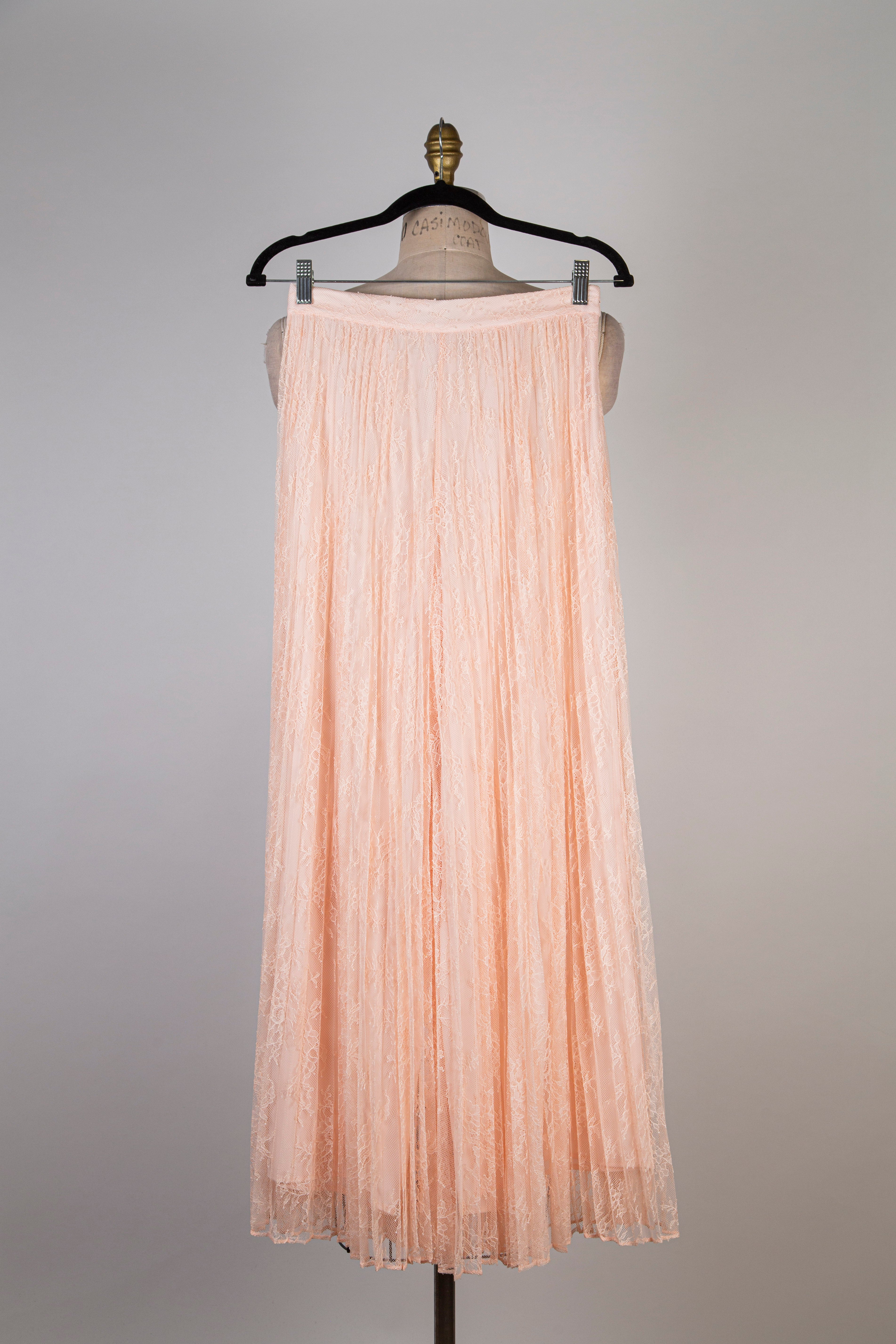 Jupe culotte en dentelle florale plissée rose pêche (4 et 8)