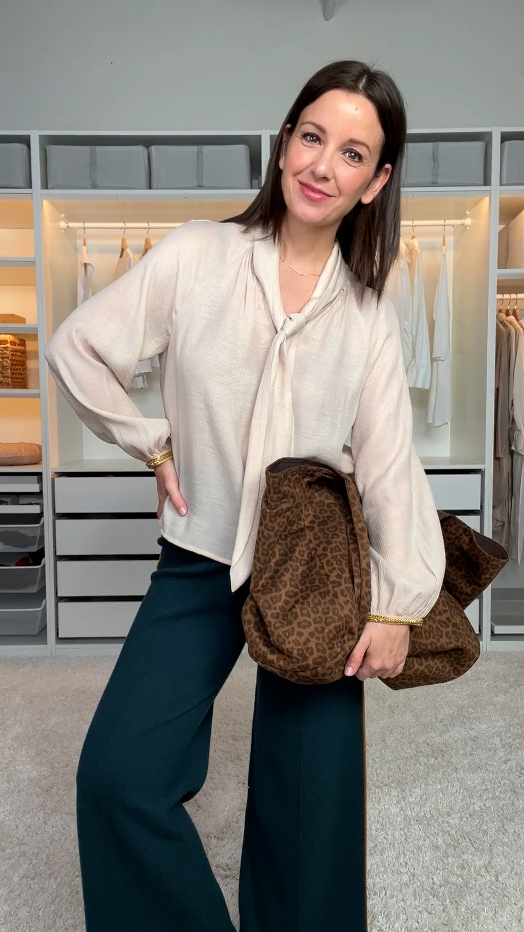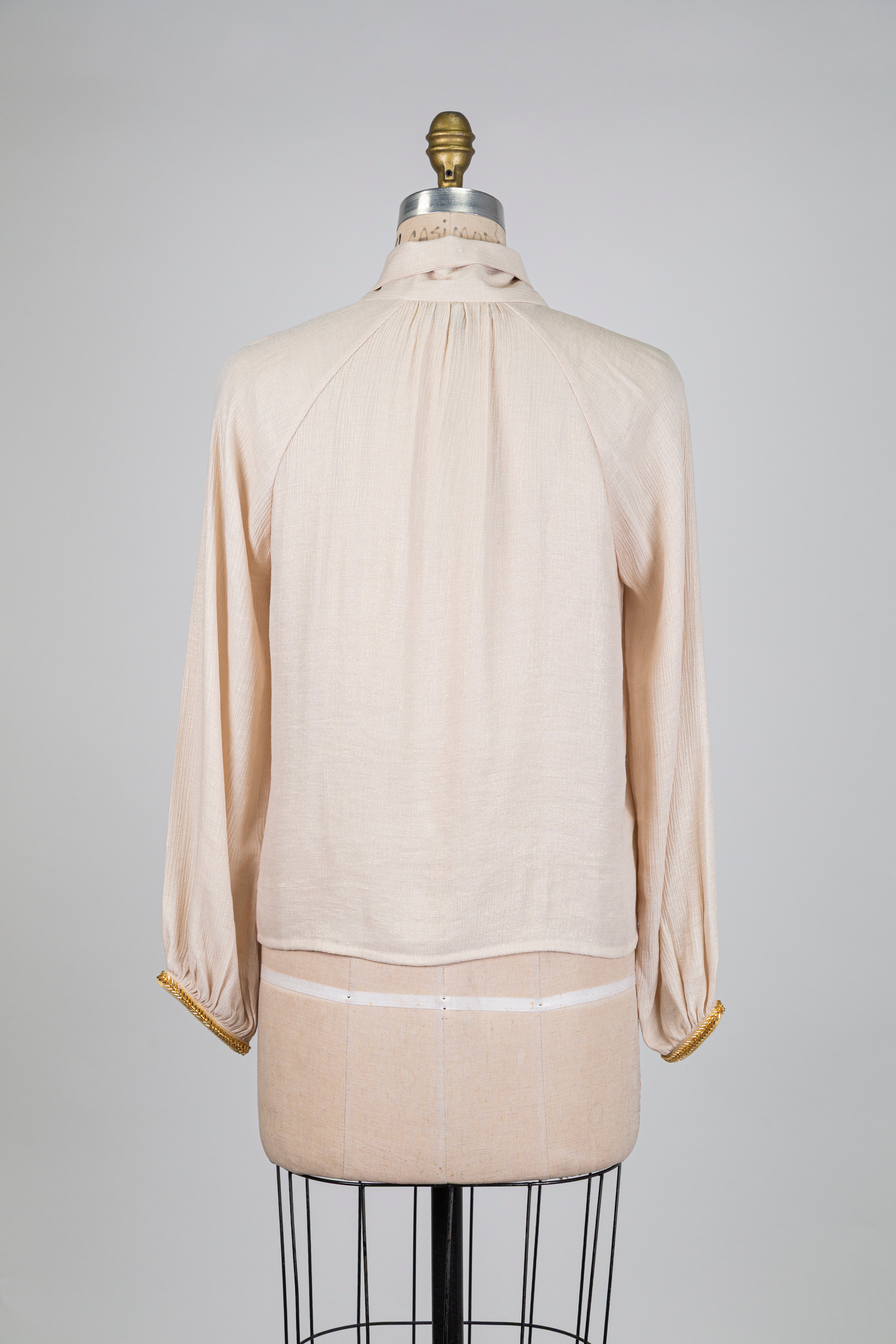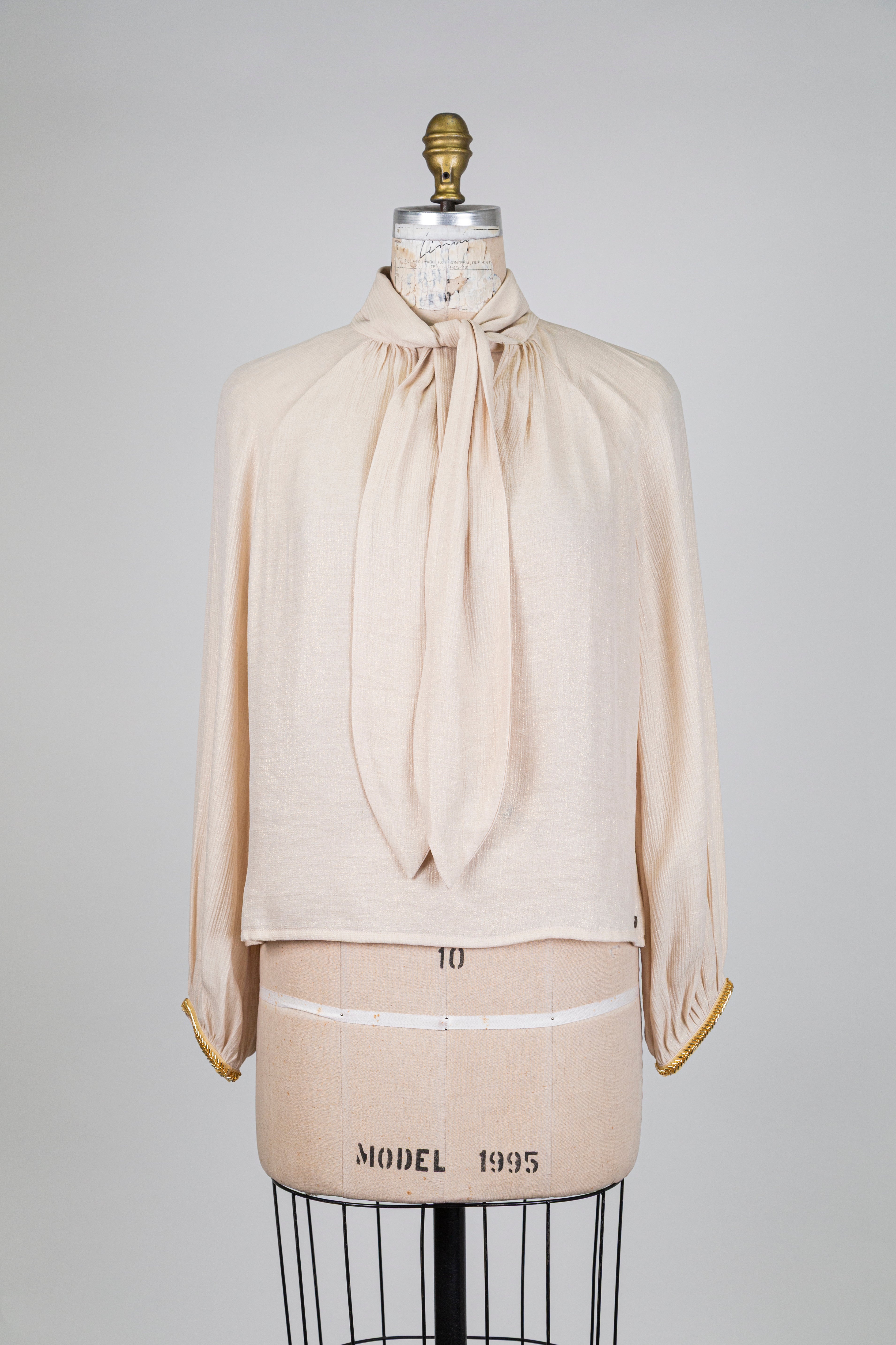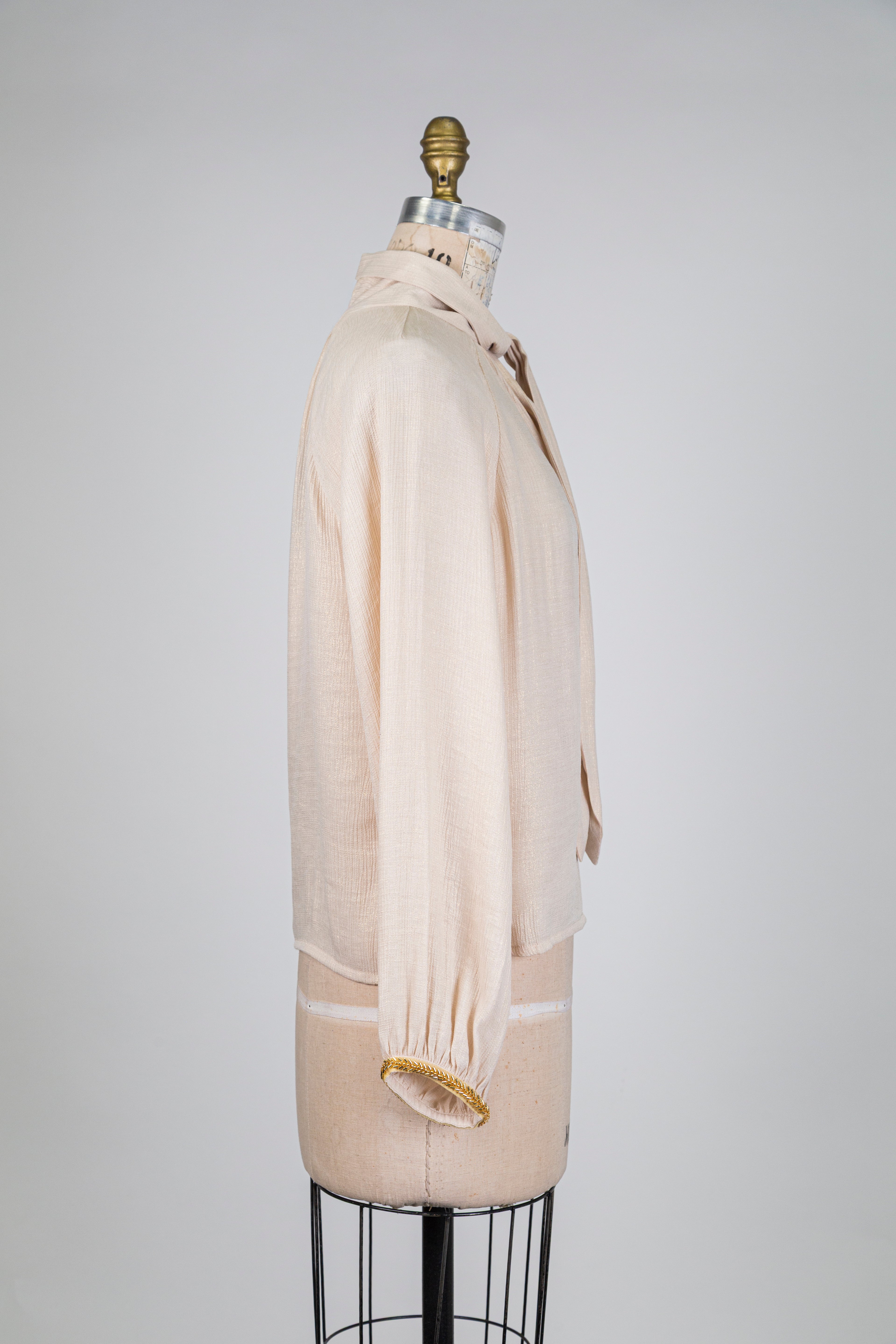 Blouse écru doré à col lavallière (S)