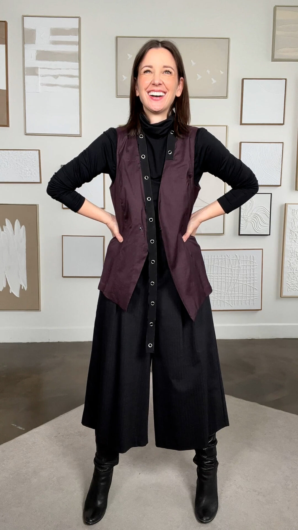 Jupe culotte noire à fines rayures (12)